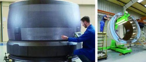 Nexcelle公司集成推系统的复合材料O形管(左)和330°整体成形碳复合材料内蒙皮。