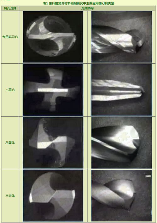 表1 碳纤维复合材料钻削研究中主要应用的刀具类型制孔刀具刀具结构