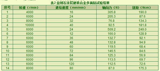 表2 金刚石涂层硬质合金多面钻试验