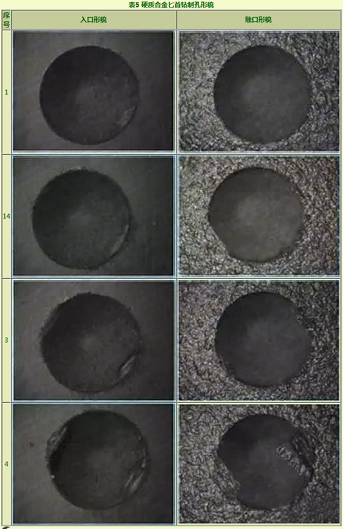 表3 金刚石涂层硬质合金多面钻制孔形貌序号入口形貌除口形貌