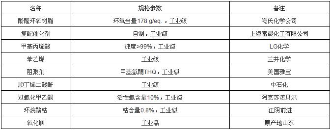 表1.1 合成耐高温可增稠环氧乙烯基酯树脂原料一览表