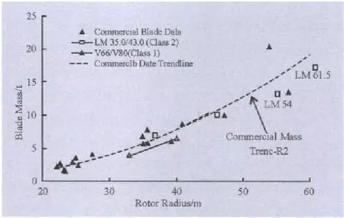 图1 商业叶片质量与旋转半径之间的变化趋势