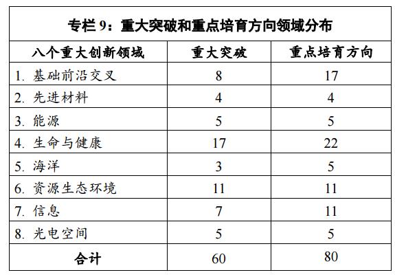 其中,先进材料将部署4个重大突破和4个重点培育方向。
