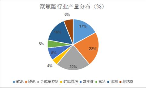 据前瞻产业研究院《聚氨酯行业报告》的统计,目前我国聚氨酯产量不断扩大,从下游产品结构上来看,主要集中在软泡、硬泡以及合成革浆料这几个板块。