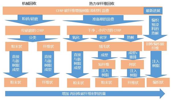 图2,碳纤维回收方法(来源于 Elsevier公司回收手册)