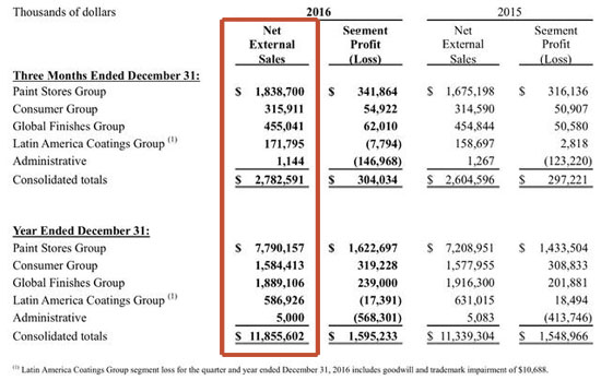 PPG、宣伟等涂料巨头2016年业绩几何?