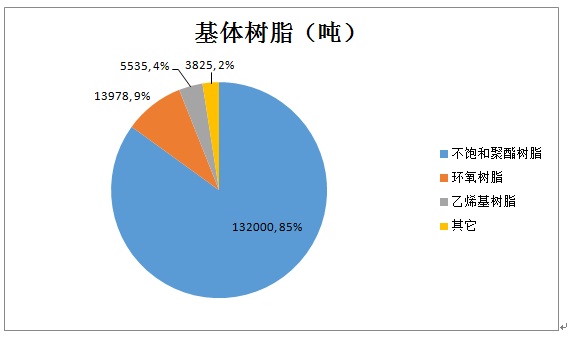 树脂方面,不饱和聚酯树脂(UPR)占据了印度市场的85%,消耗量在2015年达到11.88万吨,产能分散,涉及企业约60-70家,其中很多生产规模较小。而环氧树脂在2015年的市场需求量则为约1.4万吨(实际为13,978吨