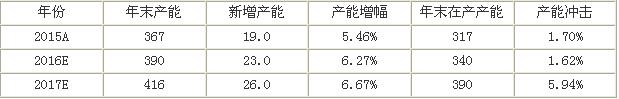 2017年产能冲击测算(不包括有扩产计划但未开工的产能)