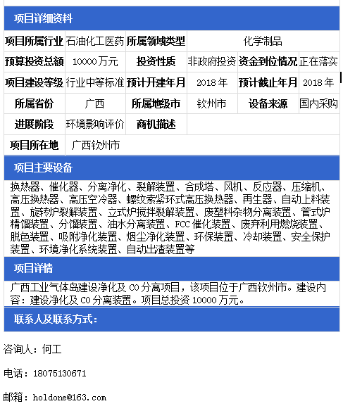 项目名称:广西工业气体岛建设净化及CO分离项目