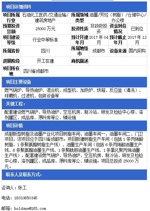 项目名称:成都新型树脂及油墨产业化项目树脂车间、油墨车间一、油墨车间二、门卫项目