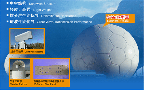 雷达天线罩是是雷达的重要组成部分,被称为雷达系统的“电磁窗口”,它可以在天线周围形成一个封闭的空间,使之免受风、沙、雨、雪、雹的侵袭,同时还要保证不能损耗天线信号。在南京玻纤院展厅,记者看到天线罩用到的原材料——外表有点类似泡沫、蜂窝夹芯,中空透气,摸上去异常坚硬。
