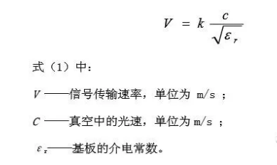 高频电路,需要构成PCB的主要基材的Dk和Df尽可能低,这有利于提高电路板导线信号传输速度,降低信号时间延迟。在高频电路中,信号传输速度可以表示为: