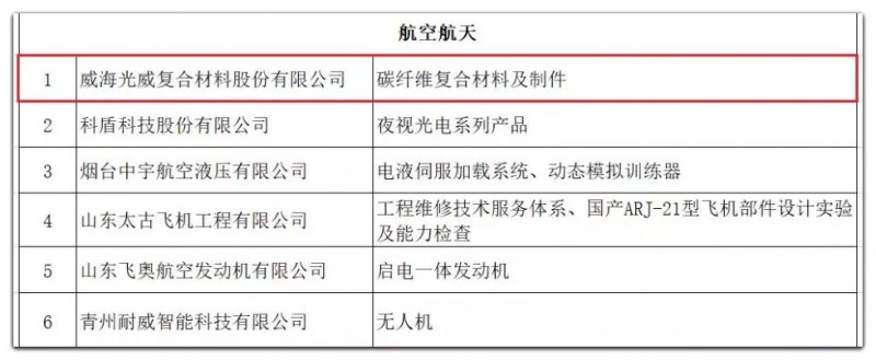 山东省高端装备制造业领军(培育)企业名单公布 光威复材实力登榜