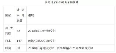 周边F-35快速增加,军机换代压力增大。F-35目前进入加速生产期,年产量超过百架,累计交付超过300架;一方面,美国为保证在印度洋-太平洋地区的空中优势,正计划从2020年开始将驻韩美军的F-16战斗机替换为F-35A隐形战斗机,美国亚太地区部署的F-35逐渐增多;另一方面,日、韩、澳大利亚等美国盟友也开始陆续接收F-35,周边F-35数量快速增长。