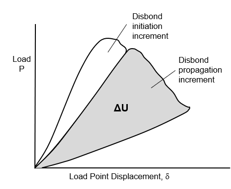其中ΔU是应变能的损失,其对应于脱粘增长的面积ΔA。使用诸如梯形法的计算机生成的数值积分方法,将ΔU的值为图3中所示的阴影区域的计算值。