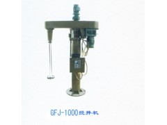 GFJ-1000搅拌机把几种液态化工原料或液态与固态化工原料充分混合的专用设备,是玻璃钢拉挤生产线主要辅助设备之一。 本机具有结构紧凑、电机运转平稳,振动小、噪音低,搅拌轴转速可调,立柱升降平稳、灵活,操作维修方便,定位安全可靠。