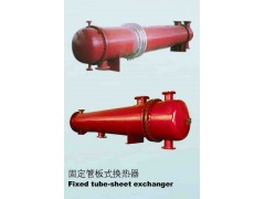 固定管板式换热器的两端管板,采用焊接方法与壳体连接固定,这种换热器结构简单;在相同的壳体直径内,排管多,比较紧凑;在有折流板的壳侧流动中,旁路小,管程可以分成任意程数。由于两个管板被换热管互相支撑,管板较薄,造价低,而且每根管子内侧都能进行清洗。但壳侧清洗较难,不能进行机械清洗,所以适用于不易结垢和清洁流体。当管束和壳体之间的温差太大而产生不同的热膨胀时,经常需要在壳体上设置膨胀节。这种换热器比较适用于温差不大或温差较大但壳程压力不高以及壳程结垢不严重或能用化学清洗的场合。由于此类换热器集中了管壳式换热器的多项优点,制造难度不大,材料范围广,清洗方便,适应性强,处理量大,且适应高温高压,应用范围为广泛。