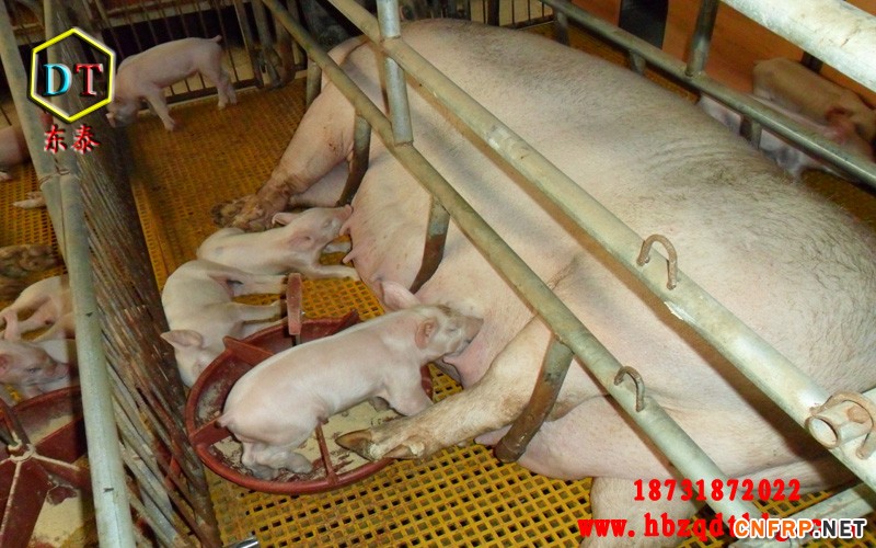 温度。玻璃钢漏粪地板不会受外界气温变化而有大的温度差距,不易滋生病录。这样就避免了大猪在凉的漏粪地板躺卧奶水受凉。使得小猪吃凉奶后造成非病例性拉肚子,大大降低了小猪的存活率,给养殖场带来一定的损失。