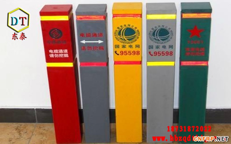 玻璃钢标志桩、无回收价值,也叫做防盗标志牌。标志牌是用文字与图案传递警告、禁令、指示信息给司机和行人以及道路施工人员,用以管理道路交通的安全设施。它提供给道路使用者以确切的道路地形交通信息,使道路安全畅通,事关司机和行人及施工人员的生命财产安全,减少施工事故而导致的挖断地下电缆、光缆、石油管道等,是一种不可缺少的交通安全警示设施。使用寿命50年以上,长期使用可节约大量的维护成本和人力成本费用。