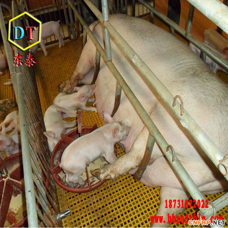 9、温度。玻璃钢漏粪地板不会受外界气温变化而有大的温度差距,不易滋生病录。这样就避免了大猪在凉的漏粪地板躺卧奶水受凉。使得小猪吃凉奶后造成非病例性拉肚子,大大降低了小猪的存活率,给养殖场带来一定的损失。