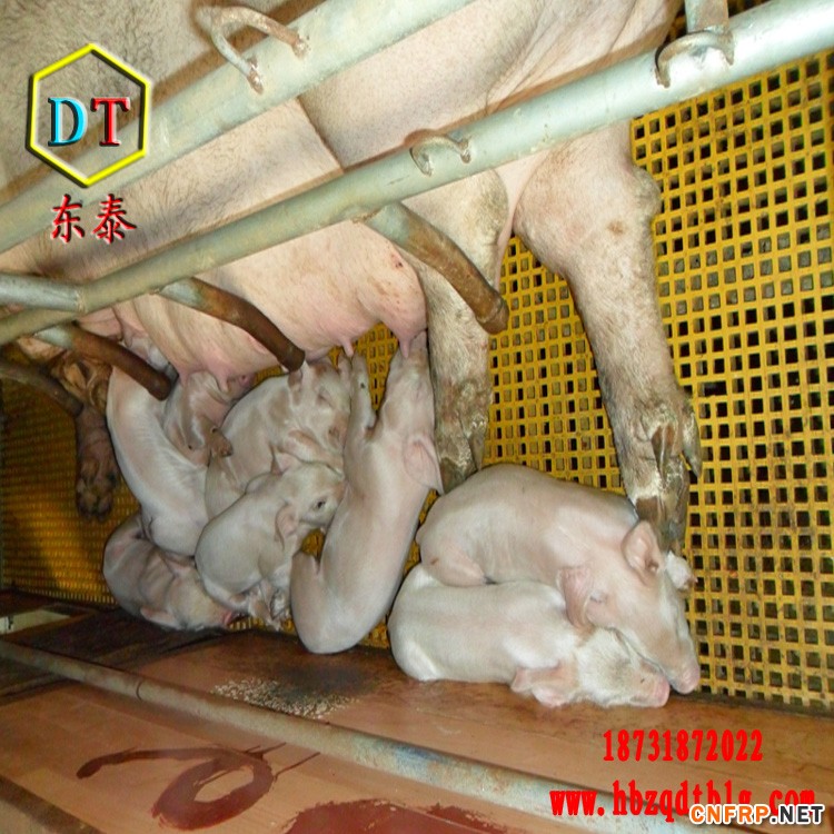 9、温度。玻璃钢漏粪地板不会受外界气温变化而有大的温度差距,不易滋生病录。这样就避免了大猪在凉的漏粪地板躺卧奶水受凉。使得小猪吃凉奶后造成非病例性拉肚子,大大降低了小猪的存活率,给养殖场带来一定的损失。