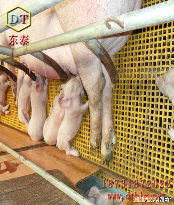 9、温度。玻璃钢漏粪地板不会受外界气温变化而有大的温度差距,不易滋生病录。这样就避免了大猪在凉的漏粪地板躺卧奶水受凉。使得小猪吃凉奶后造成非病例性拉肚子,大大降低了小猪的存活率,给养殖场带来一定的损失。