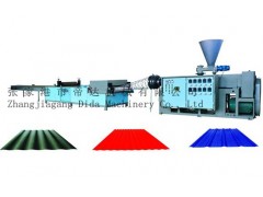 由于配备衣架式气动成型模具,该生产线有稳定的成型工艺。可调节薄厚。胶辊的使用有利于波纹瓦片的传输。输送平稳,自动切割系统确保切割平整。该生产线具有较好的性能。高品质以及相当合理的结构。
