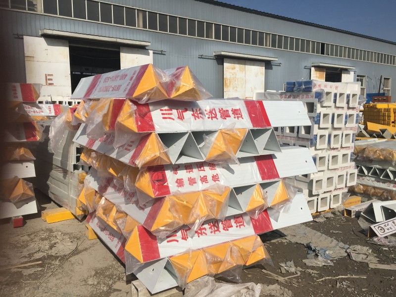 5.质量轻,适于搬运,安装简单防偷盗,该材料无回收价值,自然防盗.可以有效解决地下重要设施被挖断的问题,具有重大的社会效益和经济效益.