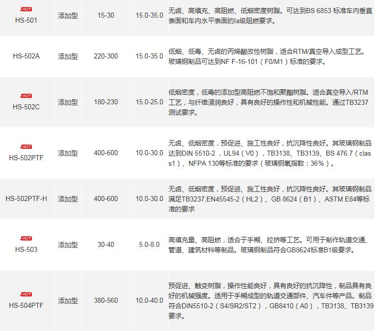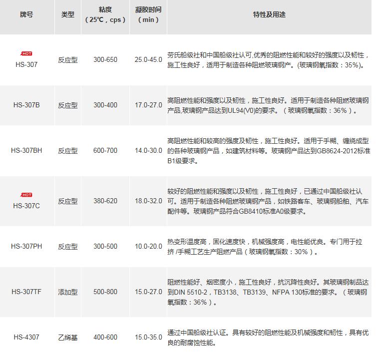 产品牌号、类型、粘度、凝胶时间、特性及用途如下图