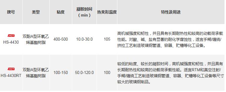 产品牌号、类型、粘度、凝胶时间、特性及用途如下图