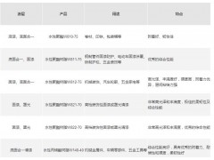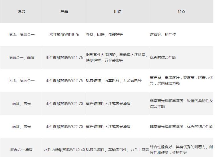产品牌号、类型、粘度、凝胶时间、特性及用途如下图