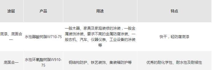 产品牌号、类型、粘度、凝胶时间、特性及用途如下图