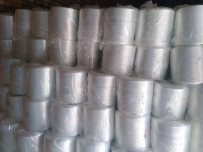 缠绕用合股无捻粗纱是为玻璃钢缠绕成型的专用纱,可与不饱和聚脂相容,制品具有优异的机械性能,主要用于制造贮罐和管道,广泛应用于石油、化工、采矿等行业。 缠绕成型工艺:将粗纱排列在纱架上并自纱架上退绕,通过张力系统、树脂槽、绕丝嘴,由小车带动其往复移动并绕在回转的芯轴(模)上。纤维缠绕角度与纤维排列密度根据强度设计,并由主轴(模)转速与小车往复速度之比精确得控制。固化后,将缠绕的复合材料脱模。