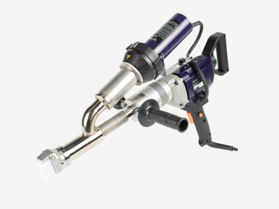 产品简介 · 马达保护装置 · 左右两侧都可以导入焊条 · 可旋转的把手 · 焊靴可360°调节,配有控制预热风向的导片 · 可以按需要将侧边把手固定在挤出枪的左侧或右侧,便于使用。