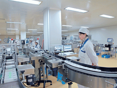 三台洁净台运转有四人坐在室内工作 |