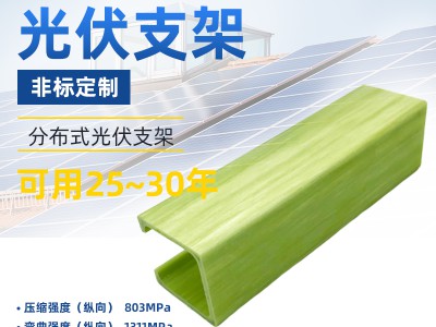 聚氨酯拉挤复合型材光伏支架,强度高、耐腐蚀、绝缘性能好,用它做太阳能支架可以为光伏发电的安全及恶劣环境的应用提供强有力的保障。