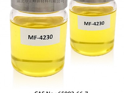 MF-4230为四官能缩水甘油胺类特种环氧树脂。该环氧树脂分子结构中含有脂环及多个环氧基团,具有较高的反应活性,在固化过程可形成较高的交联密度,其固化物表现出耐候性及耐热性好、机械强度高、固化收缩率低、耐辐射耐水耐药品性好等特点。此外,由于粘度低,便于操作,可实现无溶剂化操作,用于碳纤维与玻璃纤维复合材料制品、耐高温胶黏剂、无溶剂漆、耐高温绝缘浇铸料以及包封材料等。