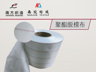 本产品采用高强度工业丝PET为原料,经整经并加有示踪线、平纹编织而成,继而严格漂洗及高温热定型后,根据具体应用场景分切而成。分切后的脱模布结构精密、网眼均匀,表面清洁无杂质,具有耐高温、耐腐蚀、耐撕裂,高温状态下拉伸强度稳定,容易脱模等特性。