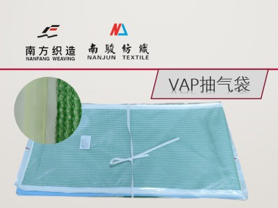 一体式VAP膜抽气袋是一种具有排气功能的组合件,包括抽气口加工、封边、端头封口、热加压、抽气口穿网等主要工序。VAP膜可有效的使灌注体系中的气体吸进组合件,并排出灌注体系。同时,能够阻止树脂渗透进入组合件。顶层是高阻隔真空袋膜,有效防止从VAP膜吸进的气体从顶层泄露;中间采用了方便导气的导流网。
