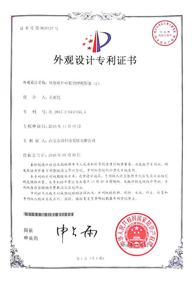 西安力达复合材料公司依据□再生能源发展计划,联合兄弟单位泰普瑞电工(taporel electrical)公司,经过科研攻关,研制出符合行业标准的无碱纤维增强聚氨酯树脂系列大型风电叶片叶根预埋楔形条。经过机构检测,其各种性能指标达均超过国际标准。该产品已经于2015年6月6日批量生产。