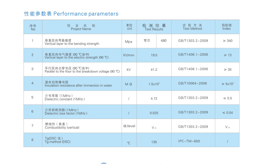 性能(概述):耐热等级B级,符合ISO1642标准中的EPGC2及GB/T1303.4—2009中的EPGC202,具有较高的机械性能和介电性能,良好的耐热性和机械加工性,吸水率不易变形干态湿态电性能良好,阻燃等级可达UL94-V0级。