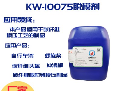 KW-10075 离型剂(脱模剂)是一种环氧树脂碳纤维复材油性脱模剂;与同类产品比具有脱模 力大、残留小、质量稳定、不影响后续涂装、无毒无腐蚀等优点;KW-10075 碳纤维离型剂适 用于各种碳纤维模压制品(如:冲浪板、自行车架/轮圈、无人机螺旋桨、头盔、球棒等)的脱模。