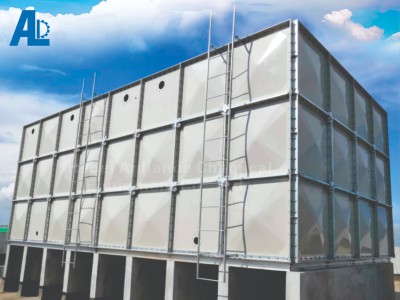 玻璃钢水箱是一种新型水箱,采用优质SMC 模压板块制成。SMC 片料(片状模塑料)属于玻璃钢材质,由浸渍增强材料、填料与玻璃纤维的不饱和聚酯树脂混合而成。