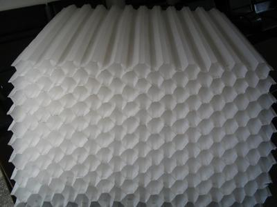 斜交错填料具有技术先进,设计合理,数据可靠,经久耐用,经过试验和生产运行表明冷却效果好,通风阻力小,亲水性能强,接触面积大等优点。斜交错填料采用圈料和螺杆组装两种形式,倾斜角一般为60度,主要用于圆型逆流式冷却塔。