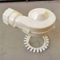 冷却塔用喷头装置的工作原理是:压力水沿切向水平进入蜗型喷头,在腔体内旋转并向下作回旋运动,从下方喷嘴喷出。水喷出后形成一伞状旋转水体,冲击溅水条及溅水叶片,溅散成均匀分布雾状细小水滴,下落到填料顶面。